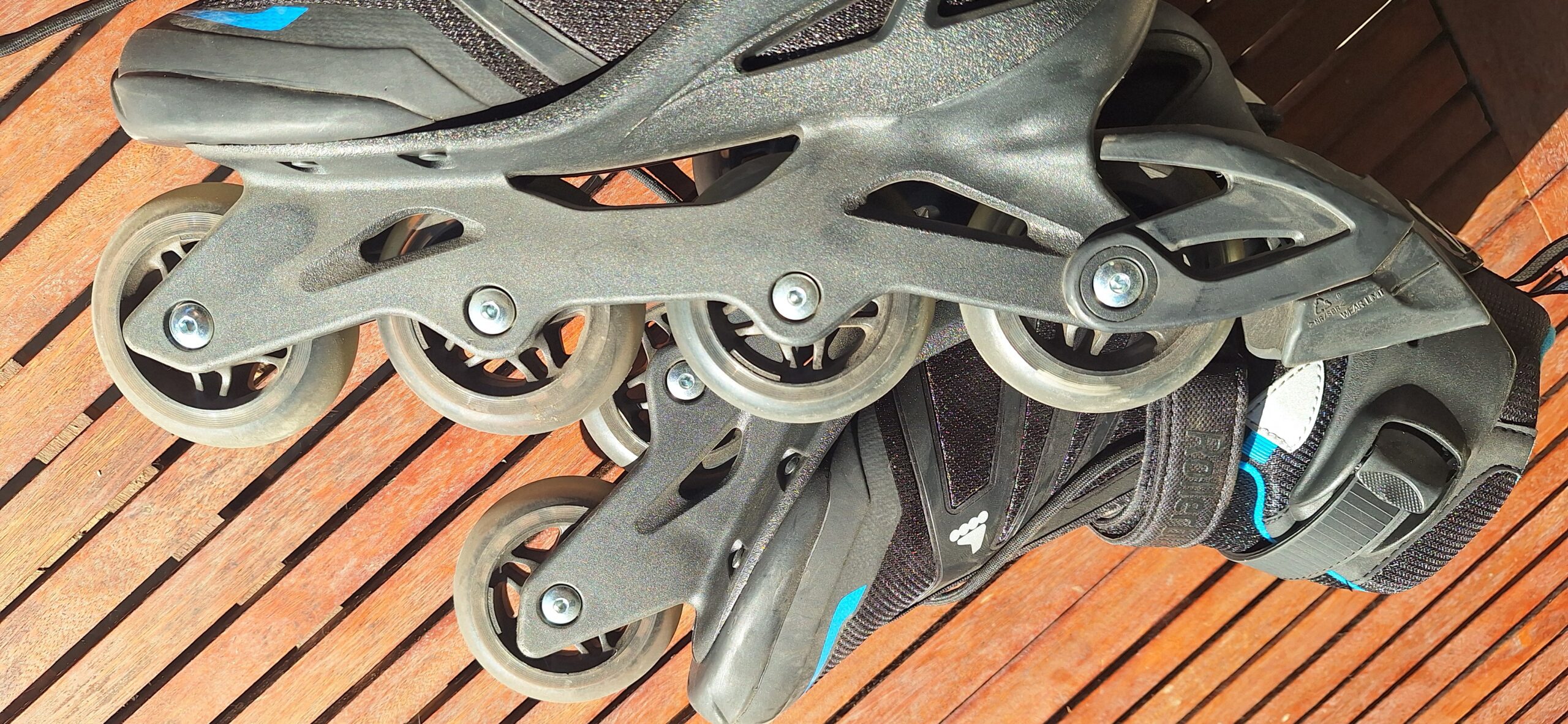 Kvalitní, IN-LINE BRUSLE Rollerblade vel. 40,5 za 1300,-. Použité jeden víkend, tudíž jako nové. Kvalitní – lehké, ale pevné. Kompozitní rám lépe absorbuje nerovnosti a zvyšuje komfort jízdy. Lehkost ocení ti, kteří chtějí bruslit delší dobu – nízká váha neomezuje tolik v pohybu a neunavuje. Vhodné jak pro začátečníky, tak pro středně pokročilé bruslaře. Velikost koleček je 80 mm. Původní cena 2799,-.